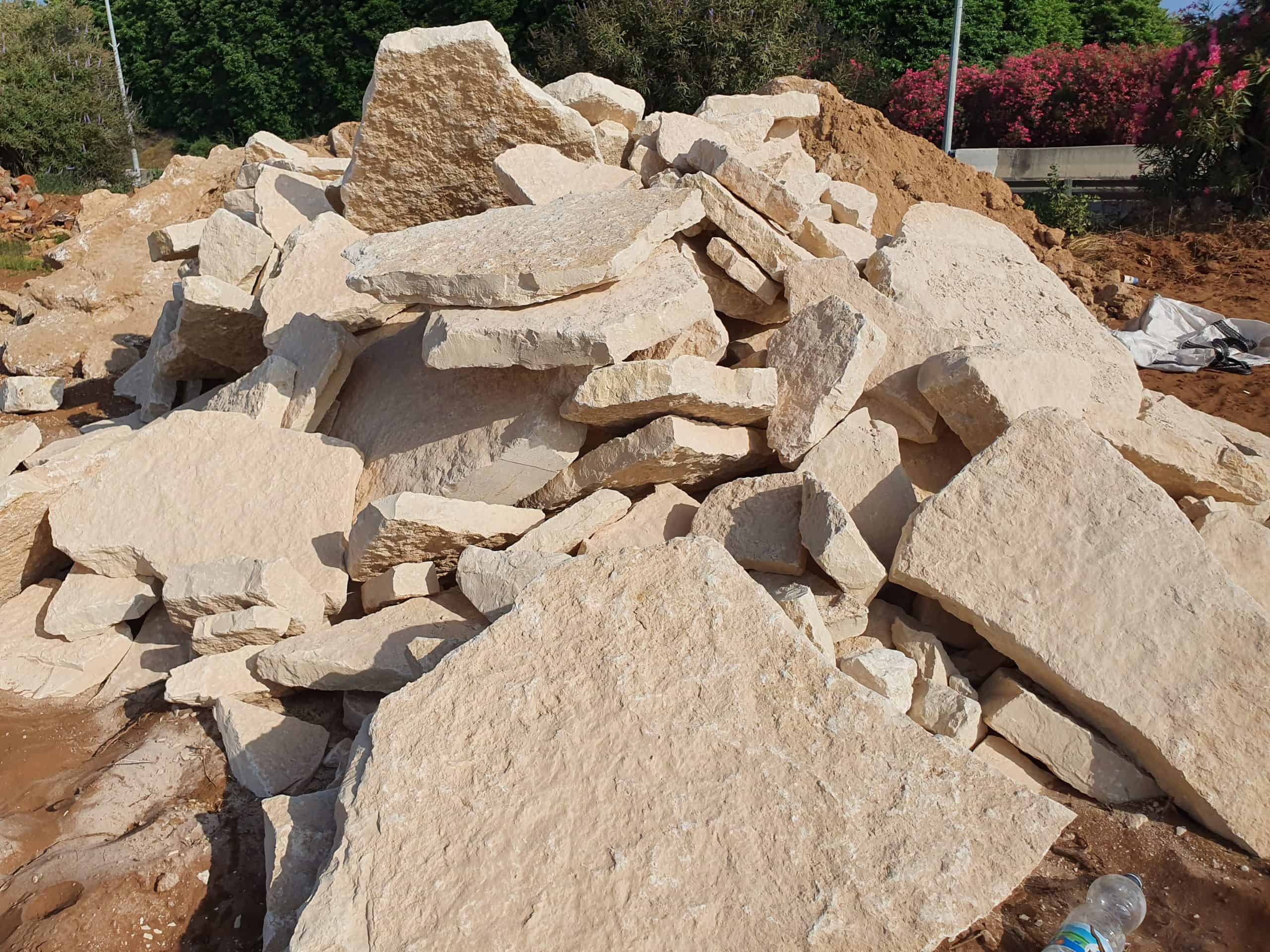 אבן מקומית שמקורה באזור השומרון-שכם בגווני אופייט.