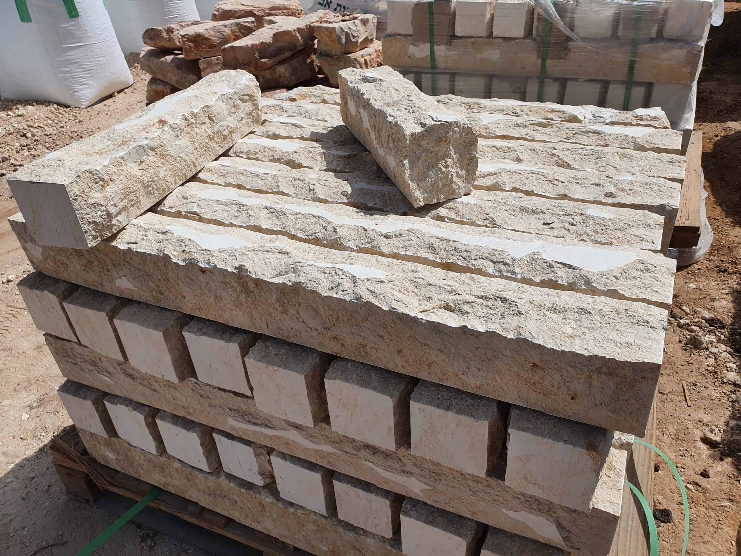אבן מקומית שמקורה באזור השומרון-שכם בגווני אופייט.